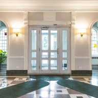 As you enter the apartment, the entry hall splits into two directions. To the left, you’ll find a piano parlor room that connects to a spacious formal dining room. Right off of the dining room you’ll find an eat-in kitchen with a pantry.