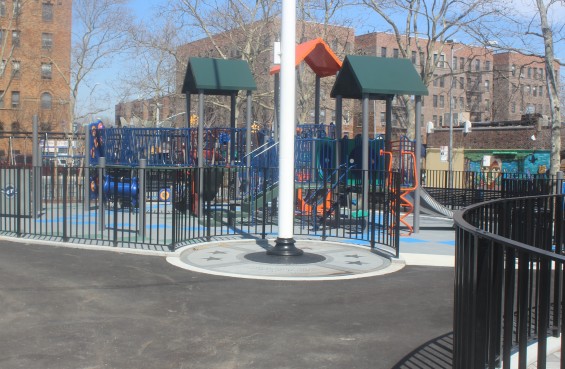 In 2015, the playground was expanded and new climbing areas, swings, safety surfaces and shrubbery were added. That upgrade, Van Bramer said, also included a new sprinkler as well as a flagpole in recognition of Lance Corporal Thomas P. Noonan Jr., who was posthumously awarded the Medal of Honor after the Vietnam War.