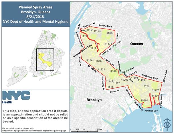 NYC DOH map of sprayings on Aug. 21.