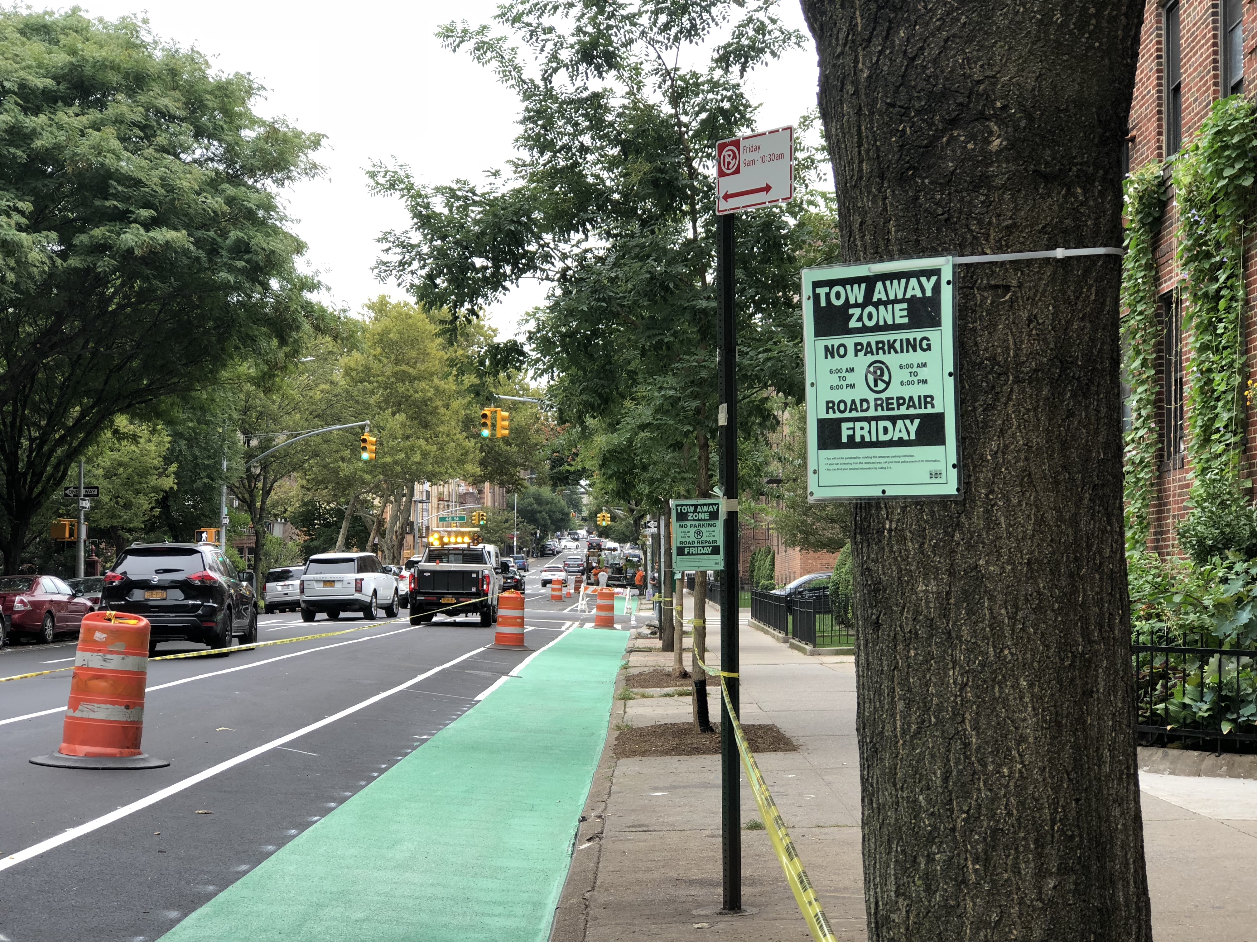 “In general, we have taken advantage of alternate side parking rules for access to the curb and given a standard 48 hours’ notice in advance of work,” a DOT spokesperson said.