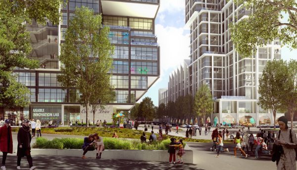 The development, which requires zoning changes and other approvals to be realized, is mainly comprised of office, retail, and manufacturing space, along with two high-rise towers with more than 1,000 units, of which 25 percent would be affordable.