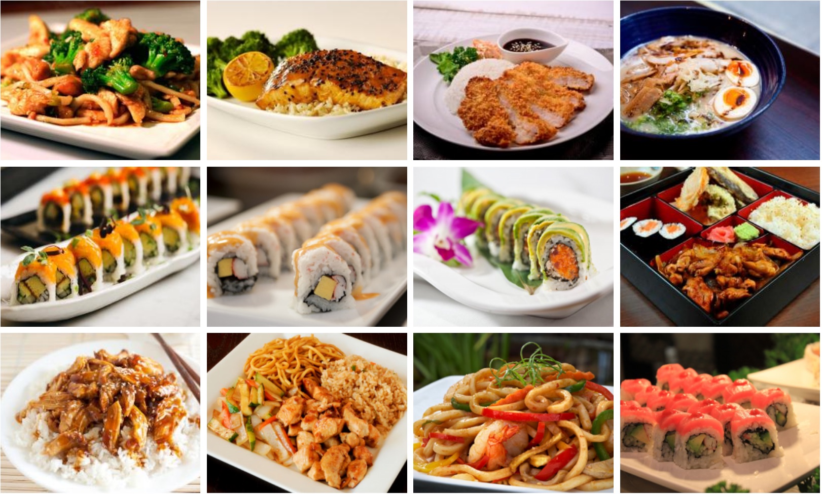 Other menu items include bento boxes and entrees like teriyaki, tempura, katsu, and Asian fusion dishes like General Tso’s Chicken and beed with broccoli.