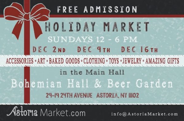The Astoria Market will take place for the next three Sundays at the Bohemian Hall & Beer Garden and will feature 40 local vendors selling items as such as accessories, art, baked goods, clothing, toys, jewelry and other gifts.