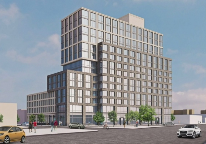 The proposed building would span roughly 183,500 square feet, with 30 percent of the units, or 61 apartments, to be set aside for affordable housing.