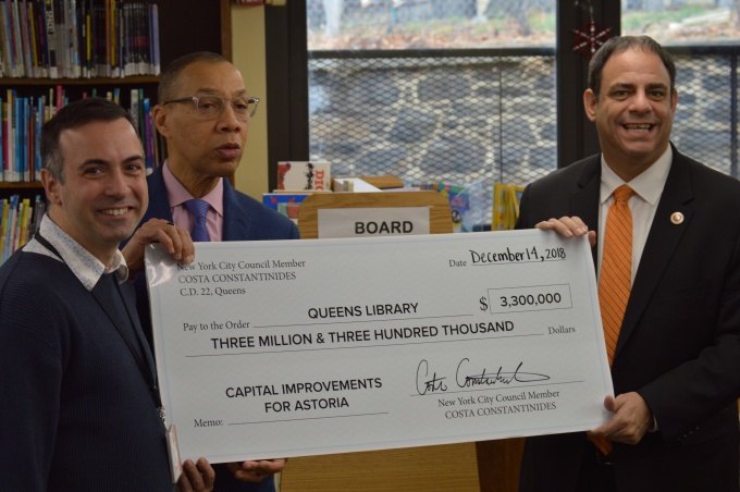 The library at 14-01 Astoria Blvd. has received $3.3 million in funding toward a full renovation as part of the new City Council budget that effect over the summer, according to Council Member Costa Constantinides.