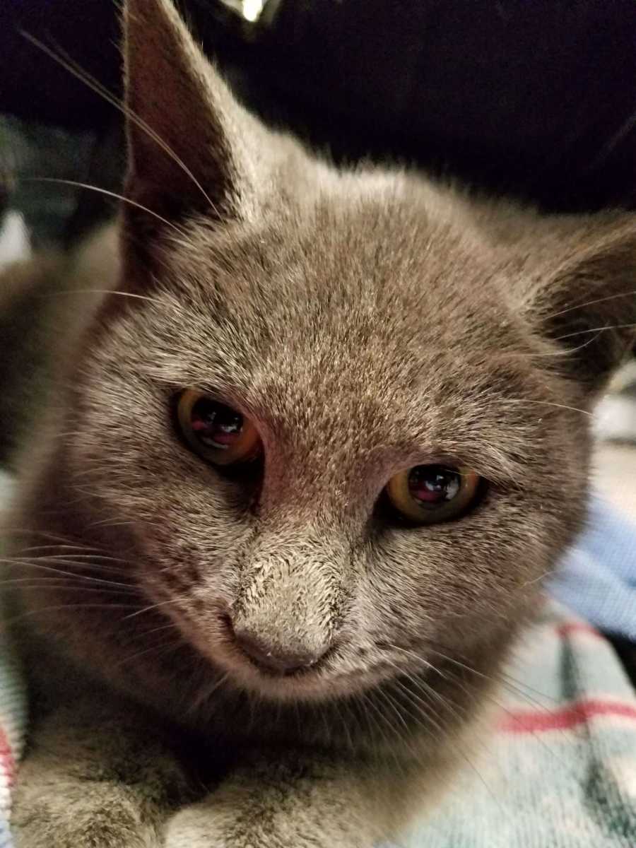 The four-pound cat is underweight at 6 months old, but she did get a clean bill of health, according to Di Leonardo.