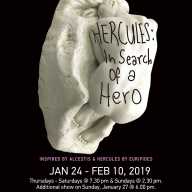 Combining excerpts from Euripides’ plays “Hercules” and “Alcestis,” along with original compelling material, Hercules is described as heroic by killing, heroic by dying in this new theater piece. A man of violence and death. Alcestis stands out for an act of self-sacrifice.