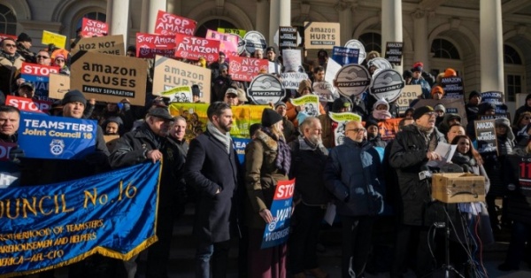 Community Groups Protesting Amazon Deal at Steps of City Hall