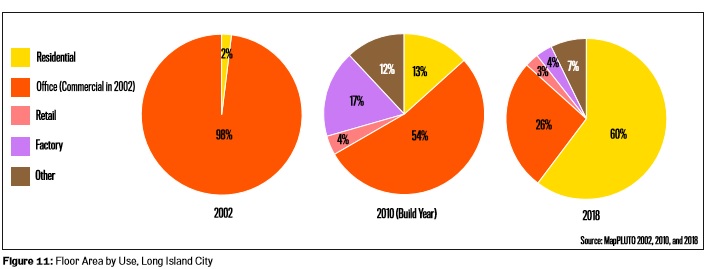 The change of use groups in the 37-block Long Island City rezoning district since 2001.