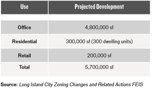 City Planning anticipated, according to its Final Environmental Impact Statement in 2001, that no more than 340 residential units would be built in the area by 2010 and expected as much as 5.5 million square feet of commercial development, according to a recent report released by The Municipal Art Society of New York titled A Tale of Two Rezonings.