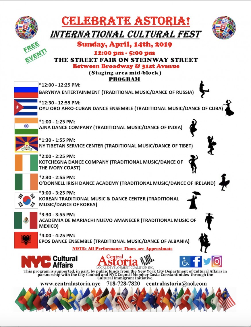At noon, a series of performances will kick off when the Central Astoria LDC’s 5th Annual Celebrate Astoria! International Cultural Festival begins.