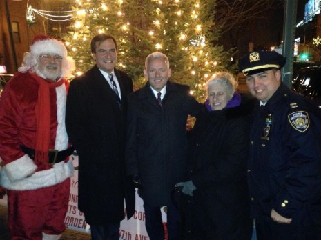 Santa, State Sen. Mike Gianaris, Councilman Jimmy Van Bramer, HPCDC president Terri Adams and Capt. Brian Hennessy at the Christmas Tree lighting in 2013.