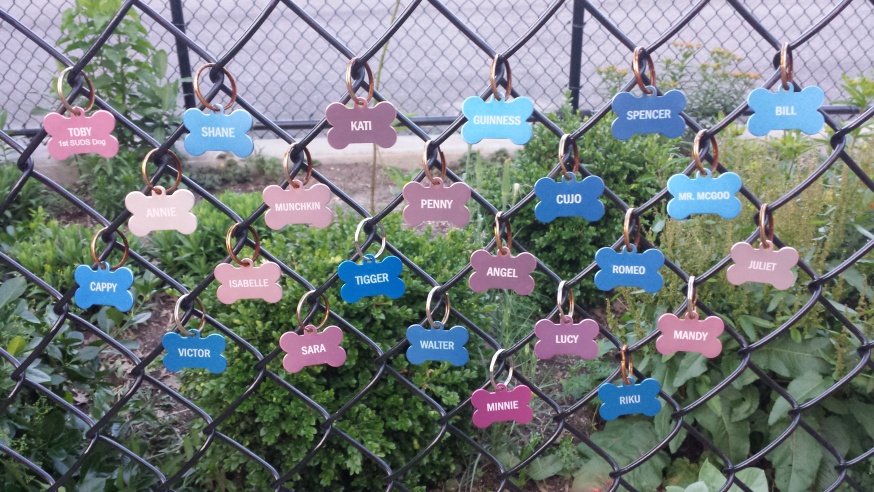 Vandals destroyed 117 tags–each tag paying tribute to a deceased dog–that were attached to the fence on a keyring. The tags, pink for females and blue for males, included names such as Toby, Spike, Shane, Barnum, Olive and more. Five brown tags, in memorial of five individuals—such as Mark Barberi, a Sunnyside resident who helped the run become a reality–were also destroyed.