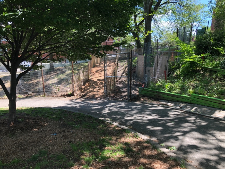 The Parks Department has installed a temporary pathway that goes from the plaza up the rocky hill to the dog run. The temporary pathway will be replaced in the fall when permanent steps go in.