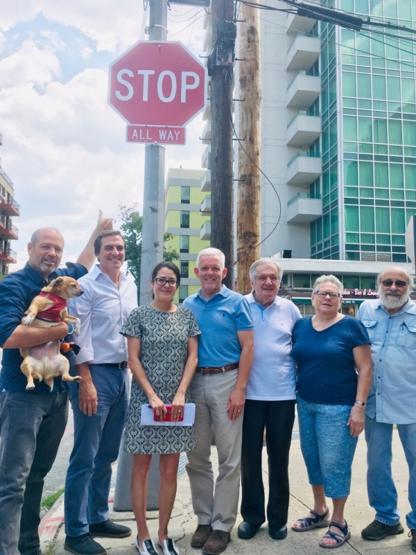 DOT Queens Borough Commissioner Nicole Garcia joins elected officials and Dutch Kills residents Friday to celebrate installation of an all-way stop sign (Photo: @JimmyVanBramer)
