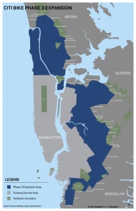City officials today announced the boundaries for the expanded Citi Bike fleet, which will ultimately double the size of the service area and triple the number of bikes to 40,000.