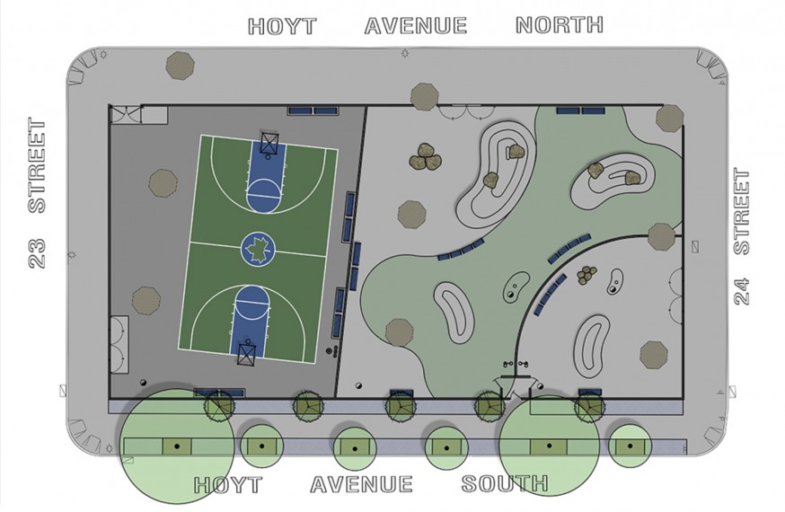 The $1 million project brought a renovated basketball court and a new bone-shaped dog run to the 82-year-old Astoria playground, located on Hoyt Avenue South between 23rd Street and 24th Street.