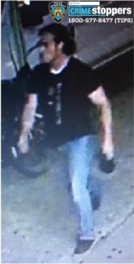 The NYPD released photos and a description of the individual in hopes of identifying him. He is described as Hispanic, about 30 years old, six feet tall, 180 pounds with black straight hair that was pulled into a ponytail. He was last seen wearing blue jeans, a black shirt with white lettering on the front and black sneakers.