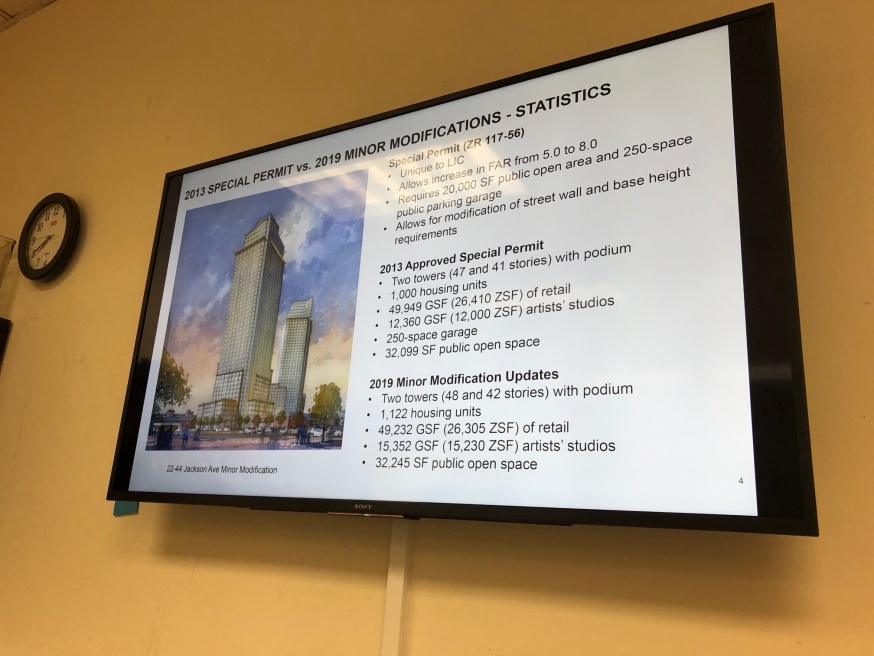 The essence of the application dealt with the location of the street walls, which were moved a few feet. It also dealt with the development being up to six feet taller, leading to an extra story on each tower—resulting in a 48 story and 42 story development. City Planning viewed the changes as “minor,” which meant the changes didn’t have to undergo ULURP.