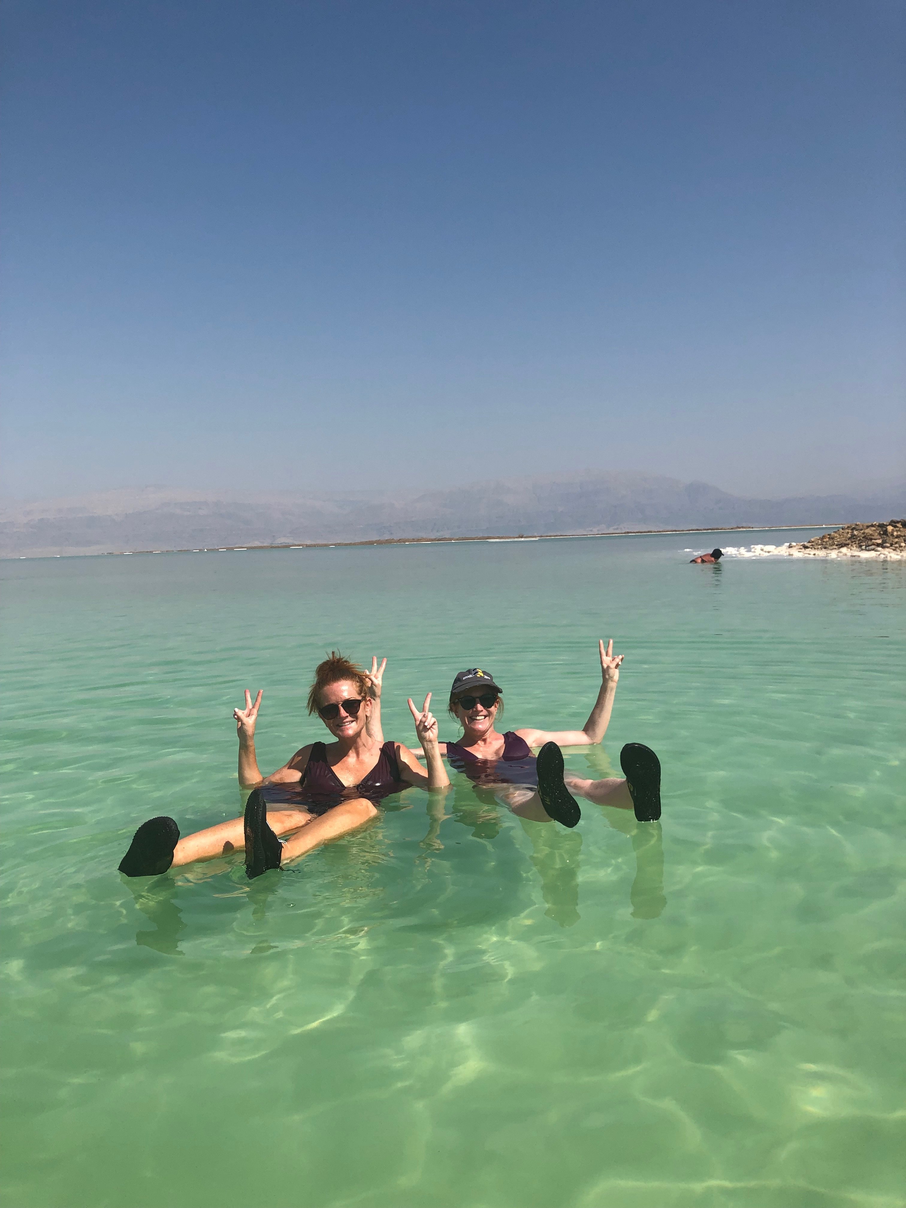 It is the saltiest sea in the world, so you can’t sink! I brought copies of our newspapers because you can sit without sinking and read them. What fun!