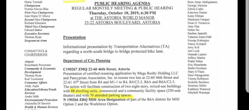 The community board meeting is scheduled to take place at 6:30 p.m. on Thursday, Oct. 10 at Astoria World Manor at 25-22 Astoria Blvd.