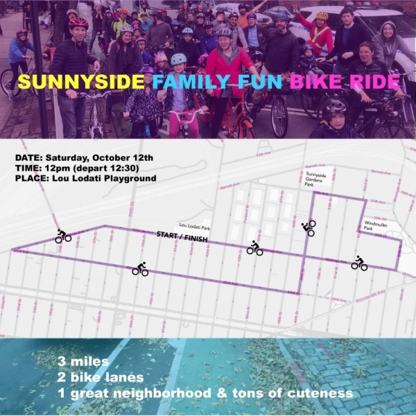 The third annual “Sunnyside Family Fun Bike Ride” returns this weekend to celebrate Sunnyside’s protected bike lanes.