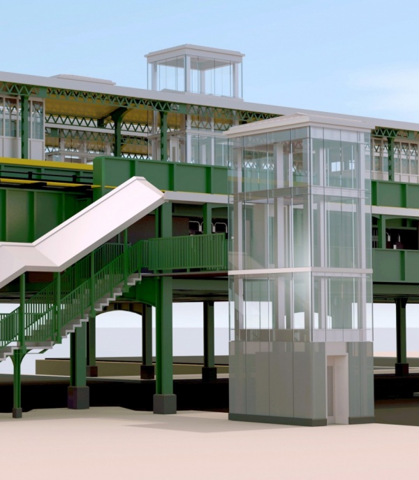 A rendering of accessibility upgrades including new elevators at Astoria Boulevard station (MTA)