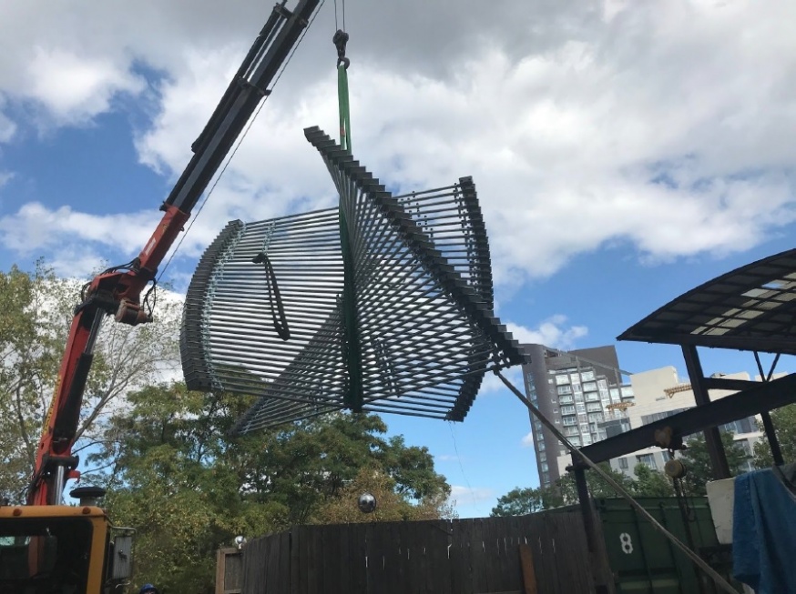 Muscle Memory being installed at park (Photo: Local 3, I.B.E.W.)