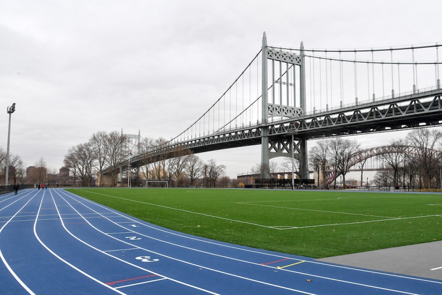City officials held a ceremonial ribbon cutting Friday to celebrate the completion of the track and soccer field at Astoria Park and to announce that construction had begun on a children’s playground inside the 60-acre park.