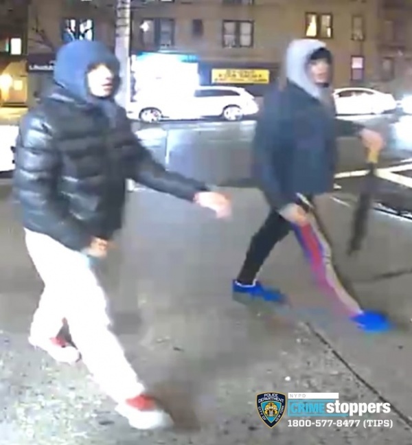 The pair of alleged thieves struck again this week. On Dec. 17 at 8:20 p.m., they approached a 35-year-old man who was walking in the vicinity of 40-21 61st St and choked him from behind with an umbrella. They grabbed the victim’s cell phone and wallet containing $20 and fled northbound on 61st Street, according to police.