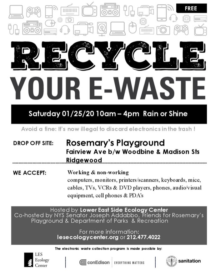 “I love having these e-waste recycling events throughout the district, because it gives my constituents an easy way to recycle their electronics at a central location right in their own neighborhood,” Addabbo said in a statement.