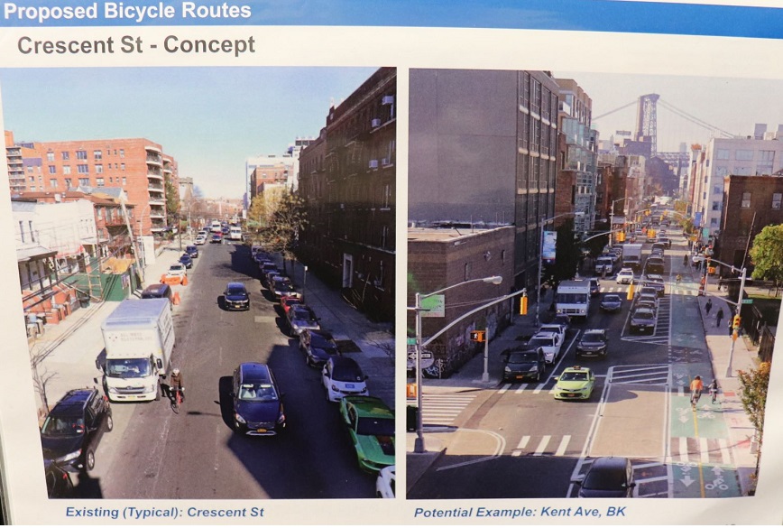 Around 130 people attended the event at P.S. 166 on 33-17 35th Ave, where the DOT put forward draft plans for protected bike lanes along Crescent Street and 31st Street. The plan also featured plans to add bicycle lanes on other streets, although they did not involve protected bike lanes.