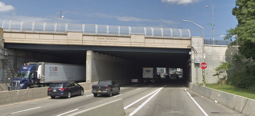 BQE near where the collision occurred, pictured here in August 2018 (Google Maps)