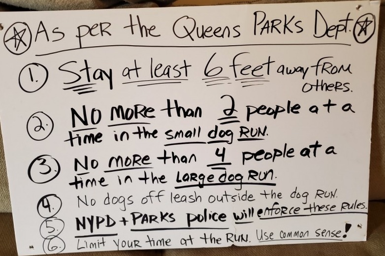 Rules for Lou Lodati Dog Run during coronavirus pandemic (Image Rick Duro: SUDS)