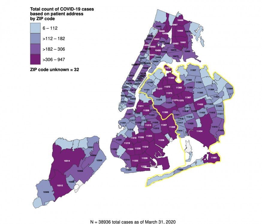As of March 31, 947 residents of Corona (11368), 831 residents of Elmhurst (11373) and 492 residents of Jackson Heights (11372) have contracted COVID-19.