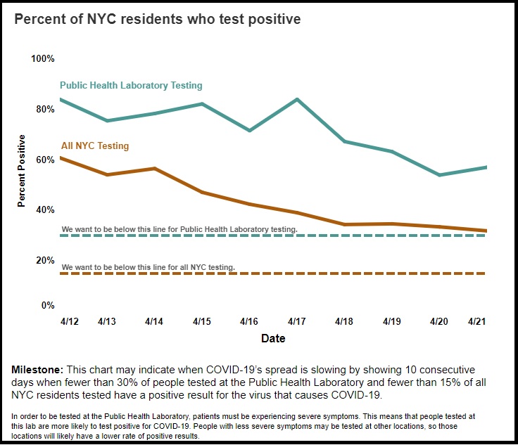 The percentage of people tested for COVID-19 that have positive results has also gone down citywide to 33 percent. One week ago it was 47 percent.