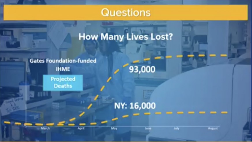 A projected 16,000 New Yorkers will die throughout the Empire State, Cuomo said at his daily press briefing yesterday, citing an Institute for Health Metrics and Evaluation model.