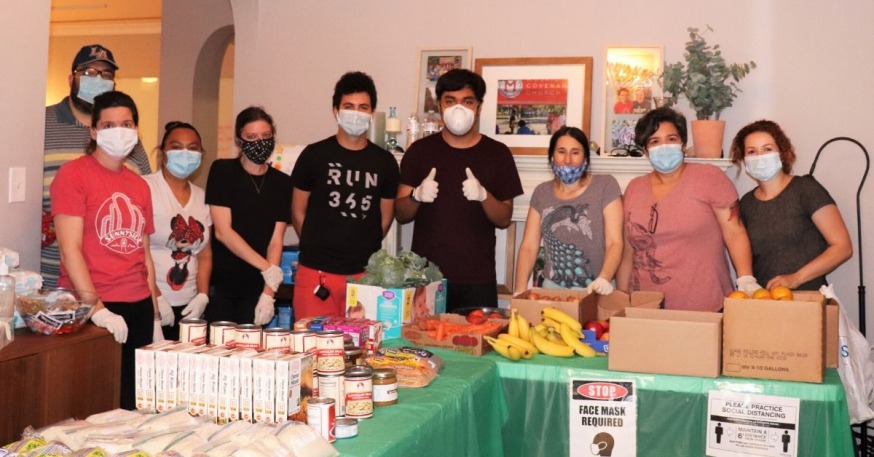 Volunteers from the Woodside/Sunnyside Community Covid-19 Relief Group at the Mosaic Church Friday (Image by Michael Dorgan)