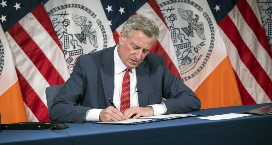De Blasio said the new laws offer sweeping protections for small business owners at a time of economic crisis.