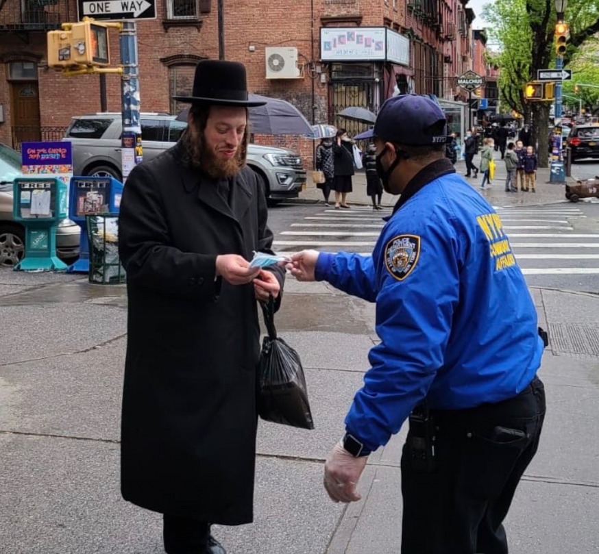 Police officers distributed masks to the South Williamsburg community last week (NYPD 90th Precinct Twitter)