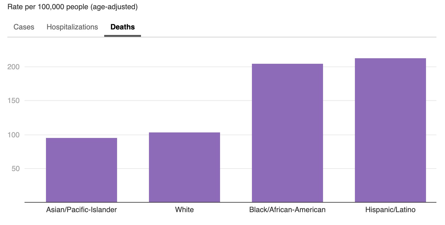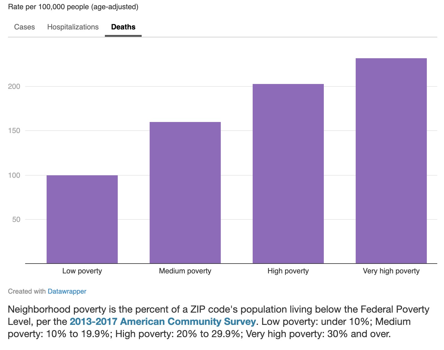 The death rate increases as income diminishes, according to COVID-19 data released today. The higher the poverty level the worse the likely outcome.