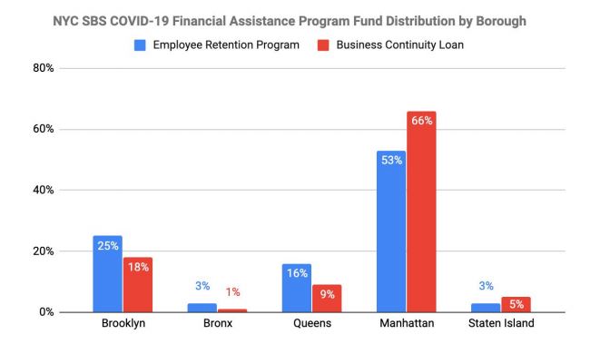 “The fact that a vast majority of the city’s financial relief went to Manhattan businesses demonstrates that smaller, neighborhood-based, immigrant or minority-owned businesses in the ‘outer-boroughs,’ a term we loathe to use, likely did not know that these programs existed or didn’t understand how to apply,” they wrote.