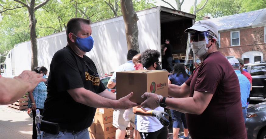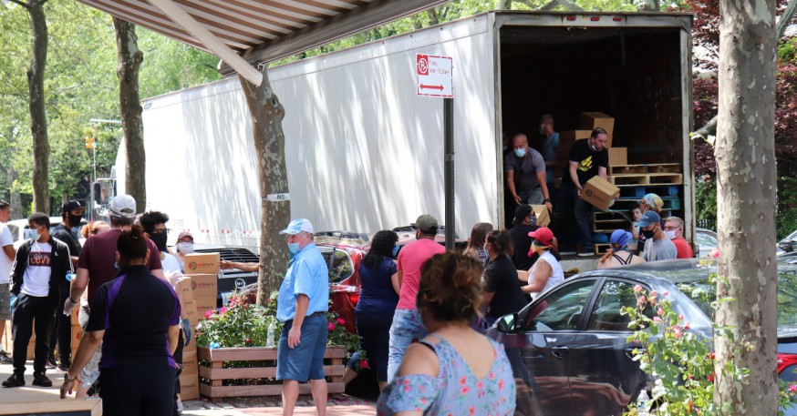 The food, which was funded by a USDA grant, is being shared out to several food pantries throughout Queens and Brooklyn over the next few days. The Skillman Avenue site is acting as a distribution hub.