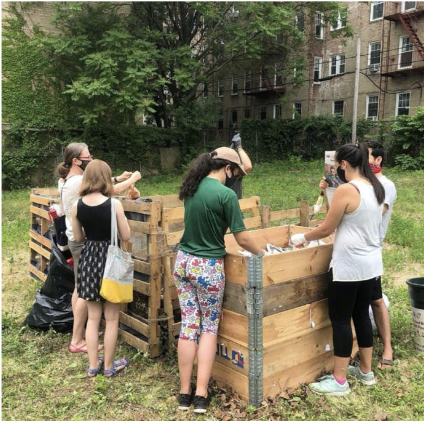 Former Compost Project and GrowNYC employees help residents compost their kitchen scraps by chopping and mixing it with leaves and paper (Image credit @oikofugicrchl)