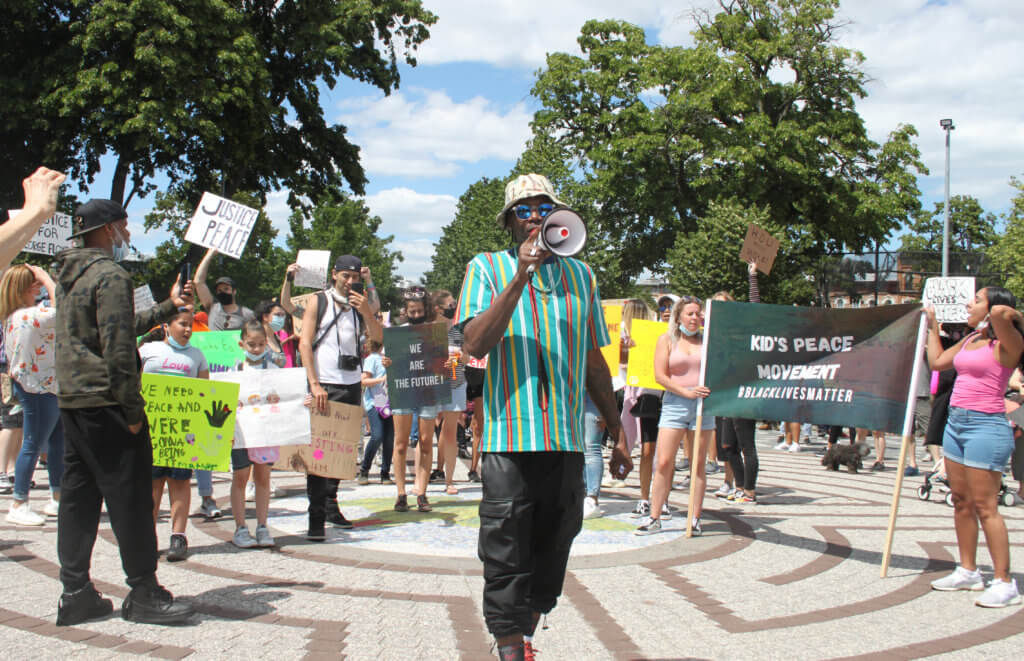 Chants of “Black Lives Matter,” “Who are we? We are the future!” and “George Floyd / Breonna Taylor / Rest in Peace / Rest in Power” were accompanied by beats from a local musician.