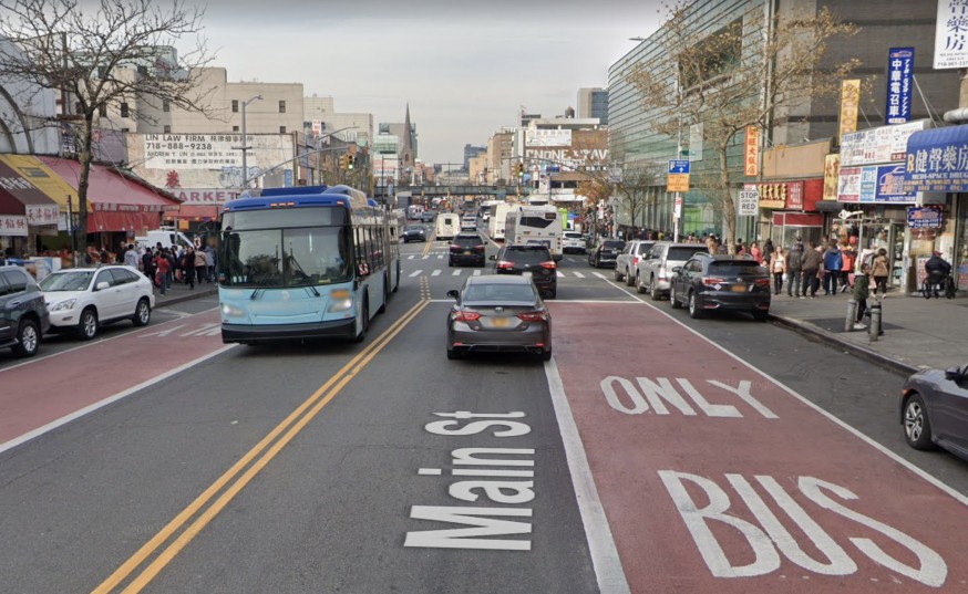 A stretch of Main Street in Flushing will be made into a busway this month (Google Maps)
