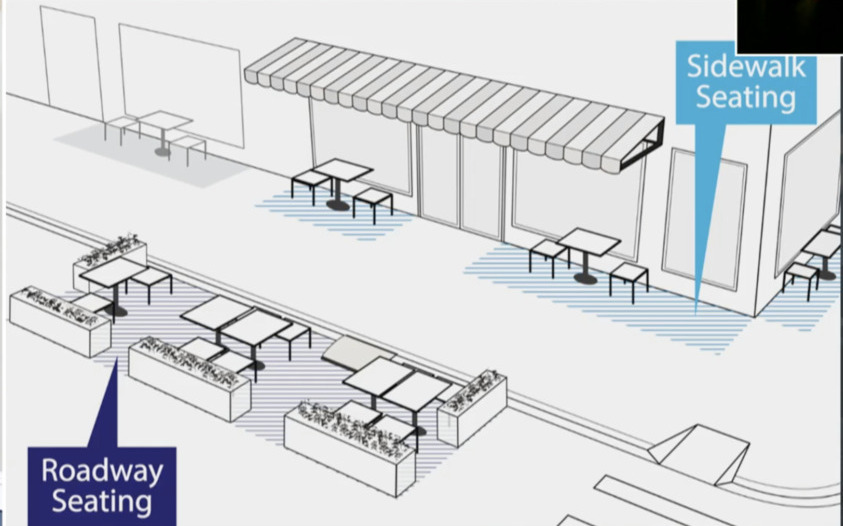 Restaurants can open sidewalk seating, beginning Monday through October and curbside seating in parking lanes Monday through Labor Day.