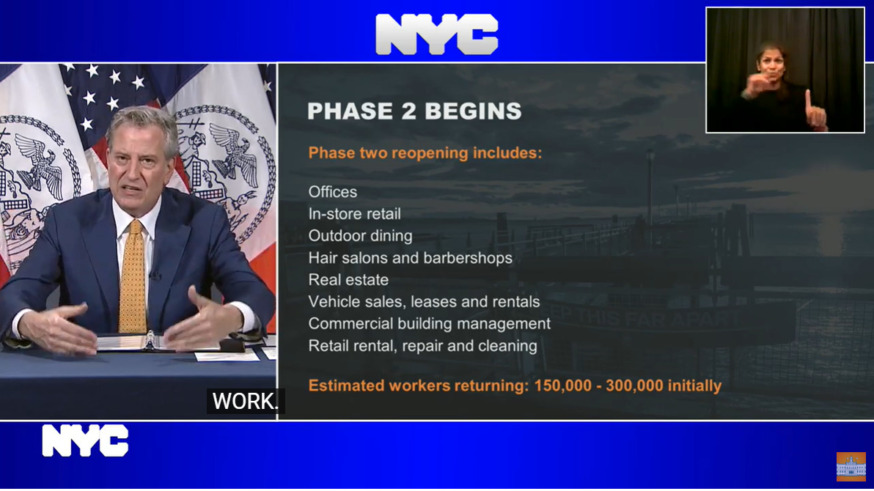 Mayor Bill DeBlasio on NYC Phase 2 Re-opening