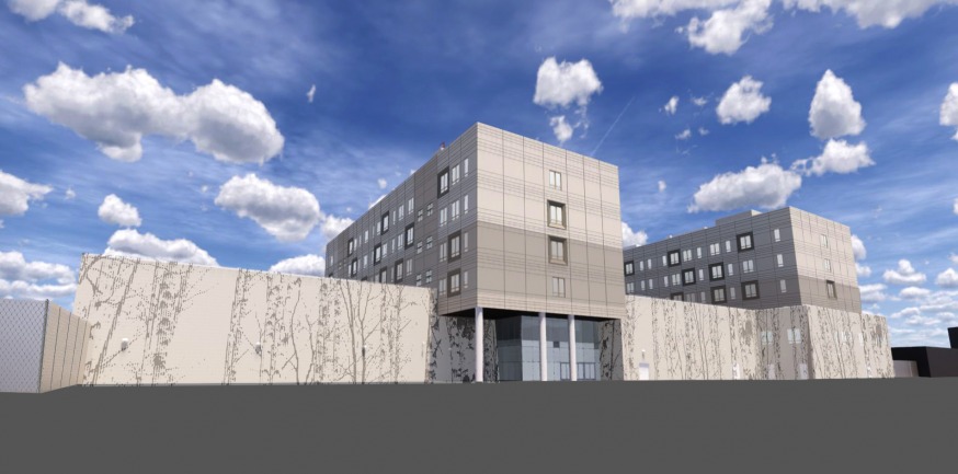 A rendering of H.S. 472 planned for 51-30 Northern Blvd. in Woodside. The rendering fronts onto Northern Boulevard (SCA)