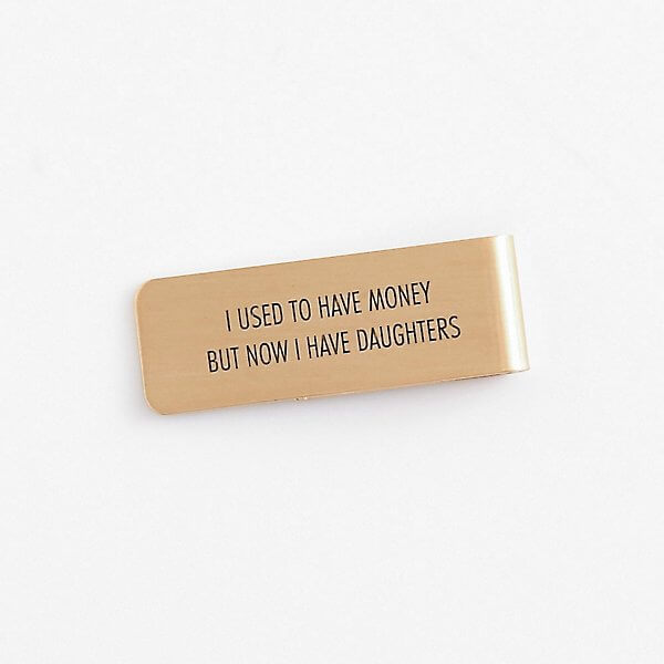 Now I Have Daughters Brass Money Clip is on point. Daughters fingers may be small but they have a big way to get daddies (and their wallets) wrapped around their fingers. This brass money clip is engraved with the phrase “I used to have money but now I have daughters” and is sure to strike a chord with many dads of girls. $9.95.
